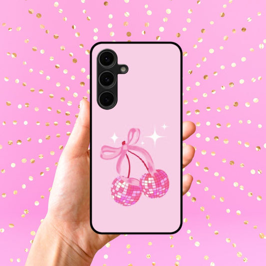 Disco Ball Cherry Coquette Pink Glass & Hybrid Matte Phone Case