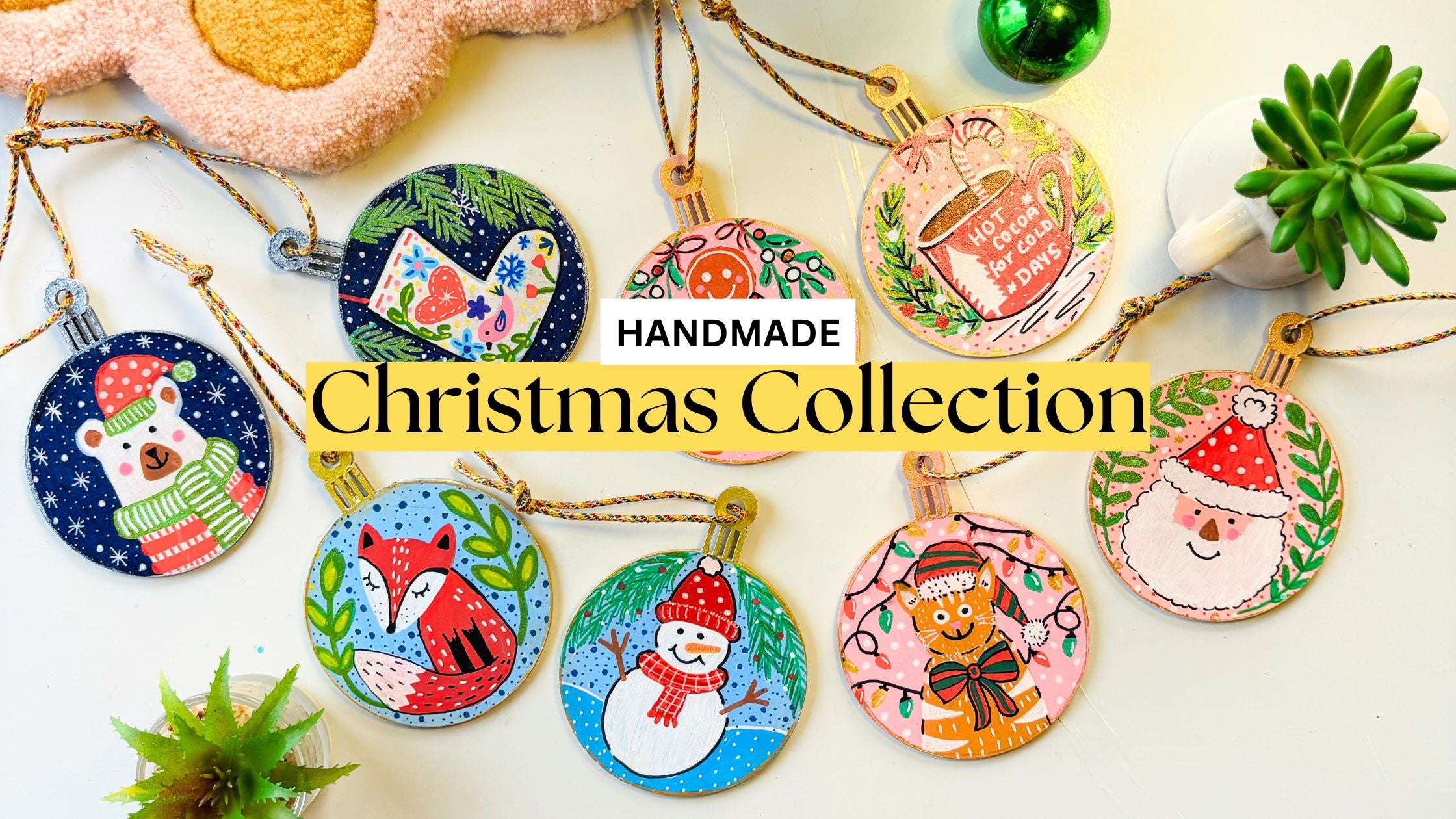 Set of 8 - Hand-painted Christmas Ornaments