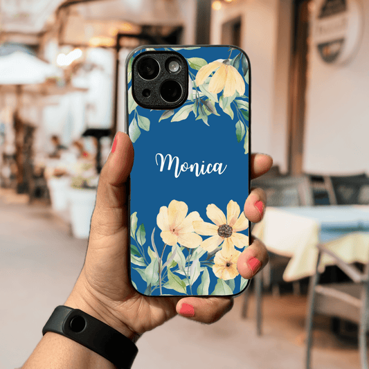 Custom Name Glass & Hybrid Matte Phone Case: Flower Tiles