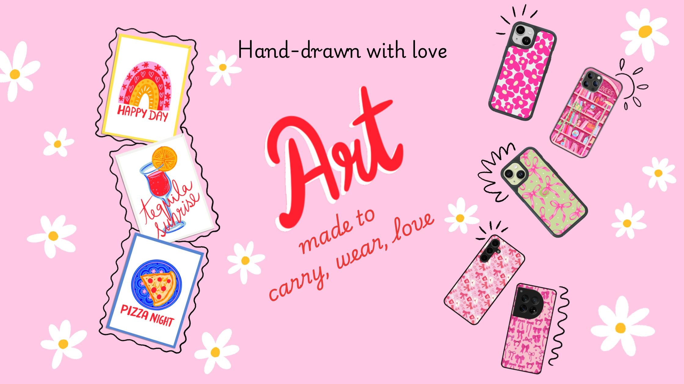 - Exclusive hand-drawn aesthetic phone cases with intricate illustrations.